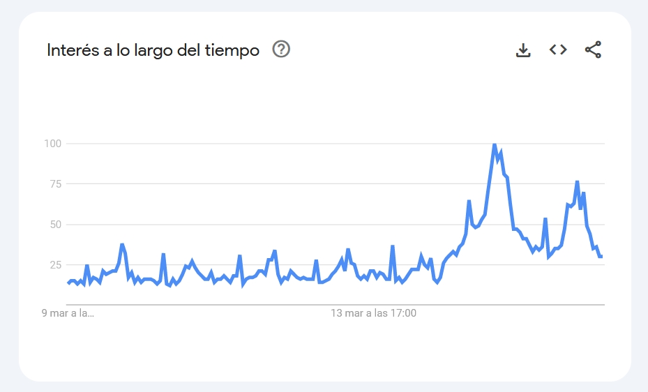 Aquí está el gráfico de Google Trends que muestra el interés relativo de búsqueda en el término «VPN» durante los últimos siete días en Texas: