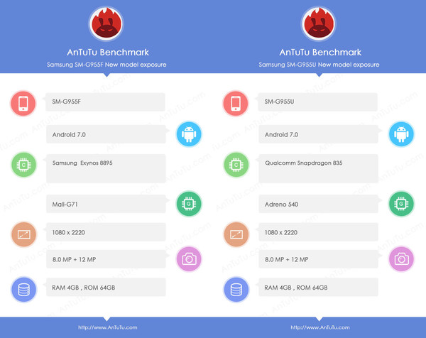 Las cuatro variantes del Samsung Galaxy S8 desvelan sus especificaciones a su paso por AnTuTu