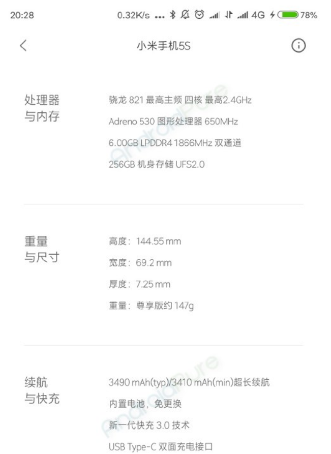 El Xiaomi Mi 5s podría llegar con una pantalla QHD de 5.15″ con Force Touch, es decir, sensible a la presión. En su interior encontraremos un procesador Snapdragon 821 con cuatro núcleos a 2.4GHz y una GPU Adreno 530, 6GB de RAM LPDDR4 a 1866MHz y 256GB de almacenamiento interno.