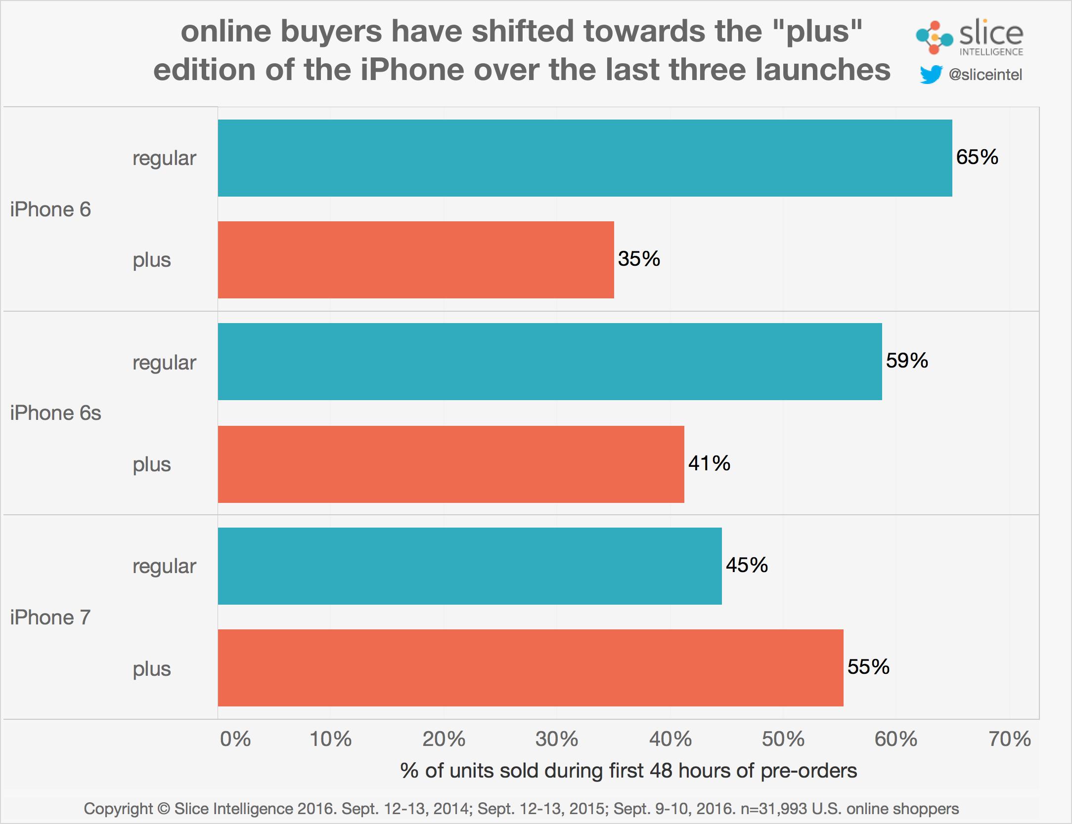 Los datos recogidos por la compañía Slice Intelligence ofrecen un primer vistazo a las estadísticas de reservas del nuevo iPhone durante las primeras 48 horas, es decir, los días 9 y 10 de septiembre – cuando la disponibilidad de modelos era más alta que ahora.