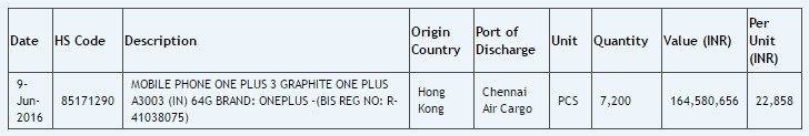 El primer envío de unidades del OnePlus 3 para ser comercializadas ha llegado ya a India. El envío está formado por 7.200 unidades con un valor unitario declarado de 22.858 rupias, es decir, unos 300 euros, según la web de importación Zauba.