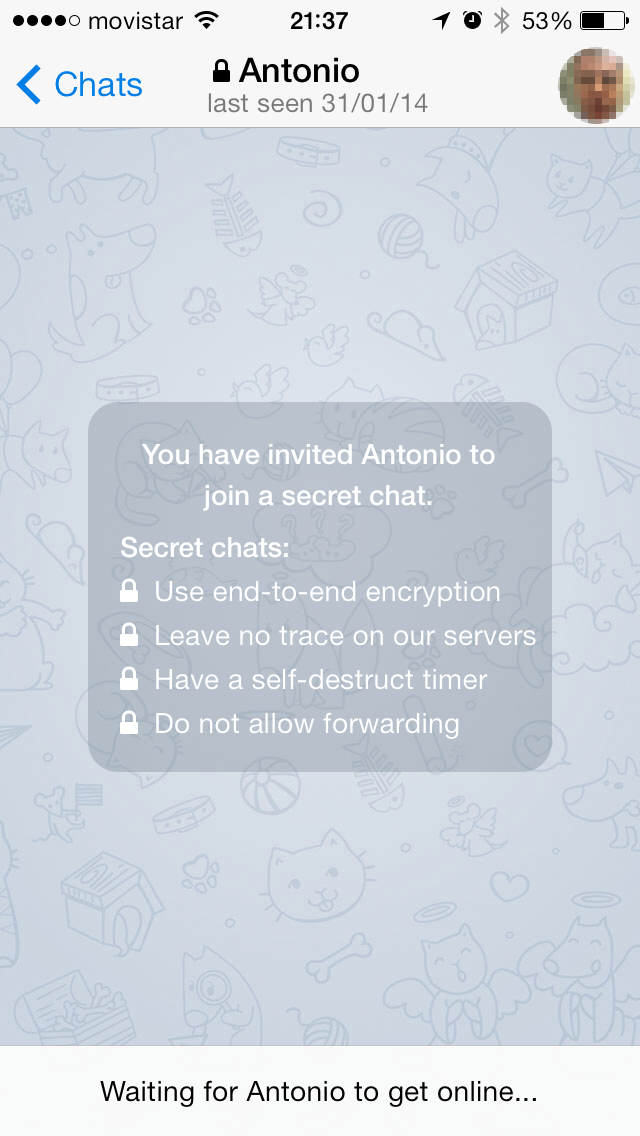 Telegram está basado en un protocolo llamado MTProto creado por Nikolai Durov, un matemático. Telegram permite establecer chats secretos, que se diferencian de los ordinarios en que utilizan cifrado de extremo a extremo. No pueden ser reenviados y puede establecerse que un mensaje se auto-destruya al cabo de un tiempo.