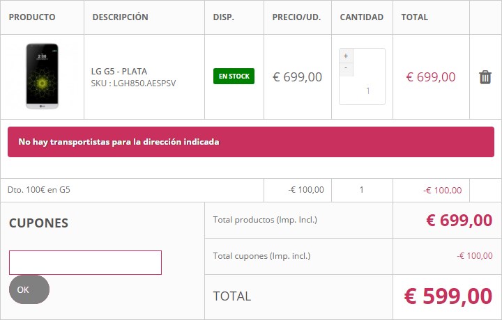 Hace unos días publicamos nuestro análisis en detalle del LG G5 y ahora nos hemos enterado de que la compañía está descontando 100 euros si utilizas el código DTO100LGG5 cuando lo compras en la tienda Online. De esta forma, el precio será 599 euros.