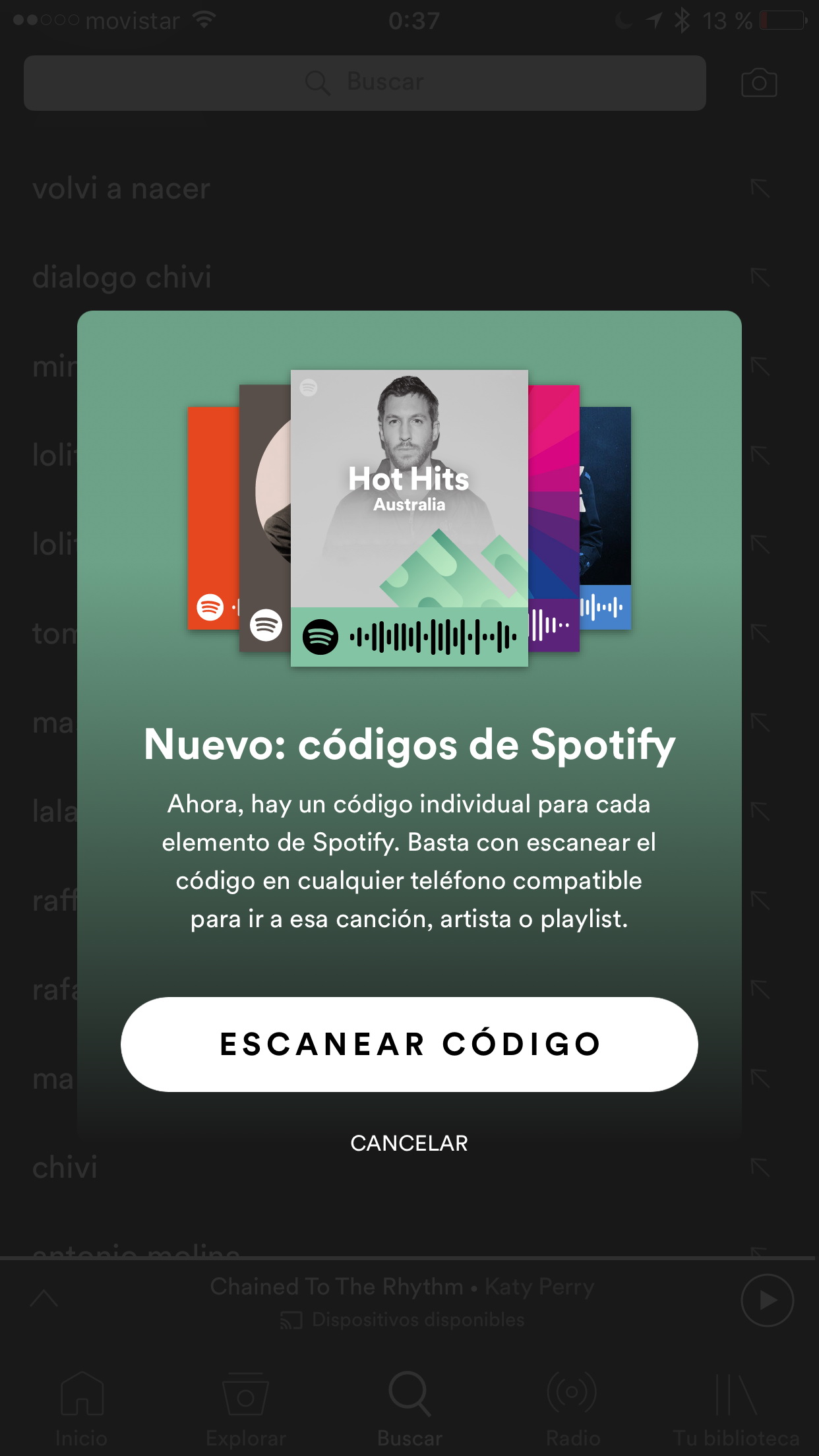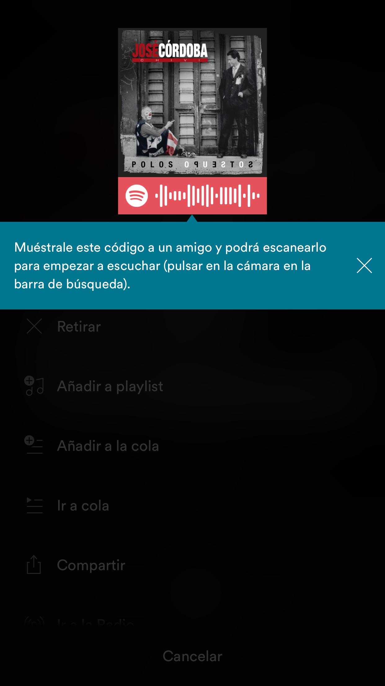 También puedes hacer una captura de pantalla de un código de Spotify que encuentres en una página web y acceder a ella desde la funcionalidad de cámara.