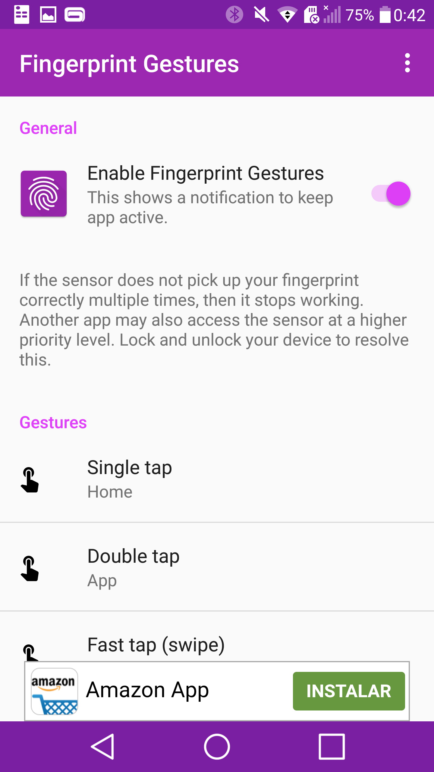 El desarrollador SuperThomasLab pretende resolver este problema con ‘Fingerprint Gestures’, una aplicación que hace exactamente lo que dice. Puedes configurar gestos como un toque, un doble toque o arrastrar el dedo para llevar a cabo una variedad de acciones.