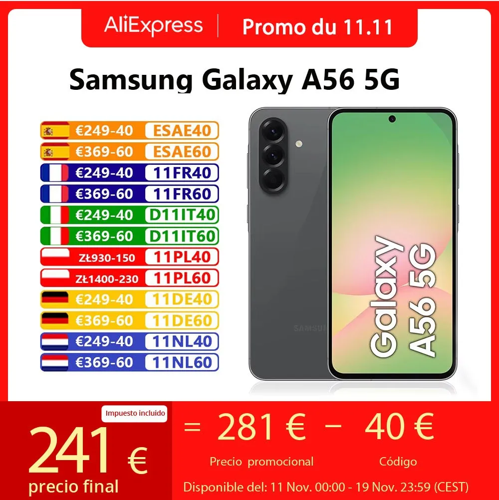 | Samsung Galaxy A56 5G | 294,85 | 40 | 254,85 € | BFES40, ESBF40 o TEKNOE40 | ![]() |