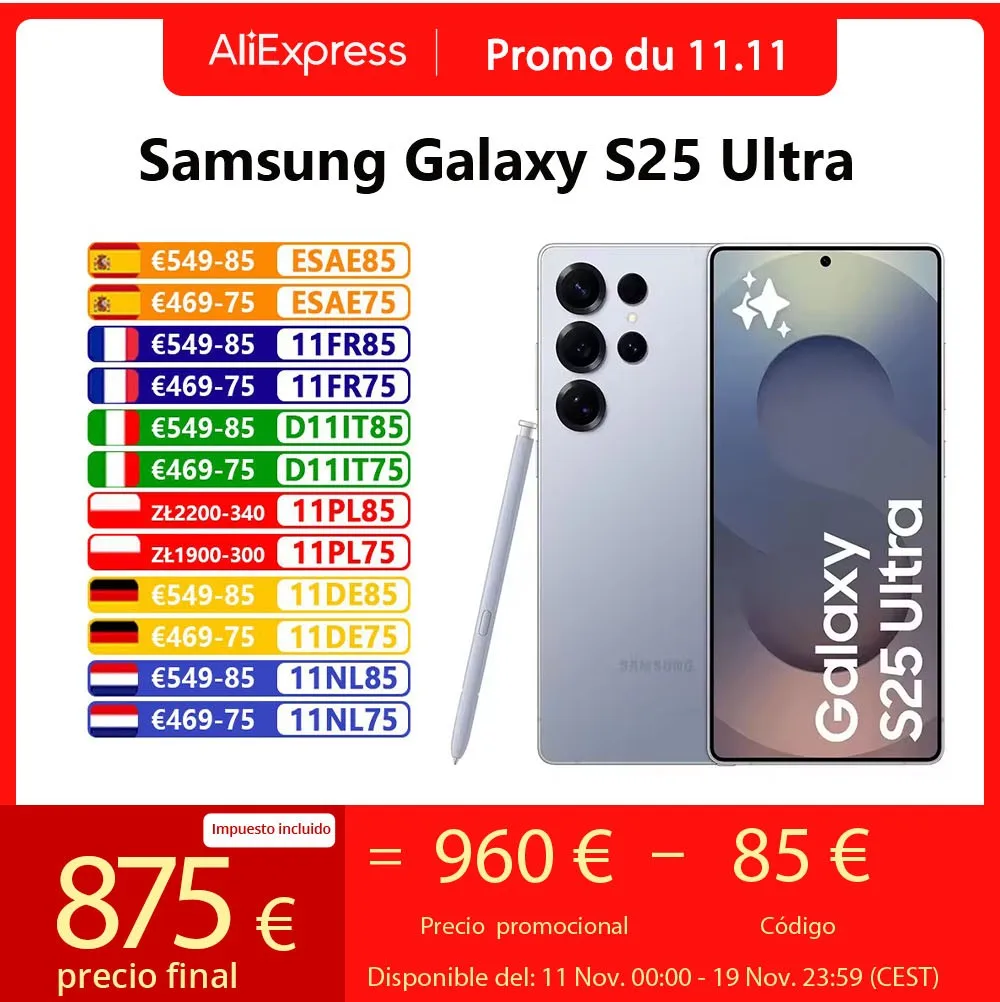 | Samsung Galaxy S25 Ultra 5G | 798,81 | 70 | 728,81 € | BFES70, ESBF70 o TEKNOE70 | ![]() |