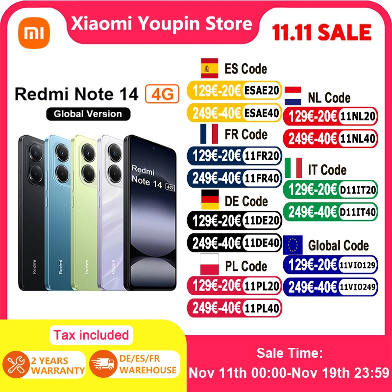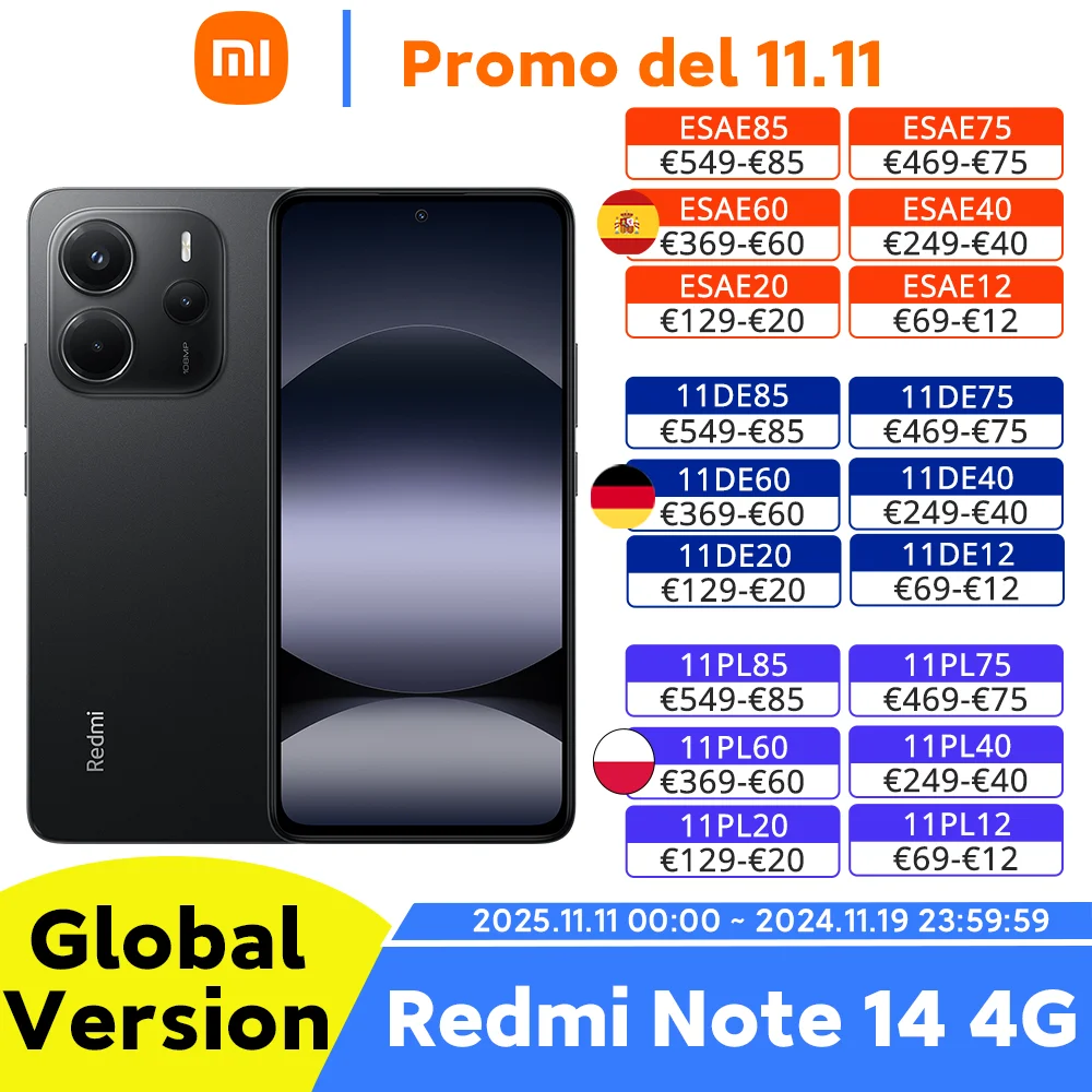 | Xiaomi Redmi Note 14 4G | 149,94 | 20 | 129,94 € | BFES20 o, ESBF20 o TEKNOE20 | ![]() |