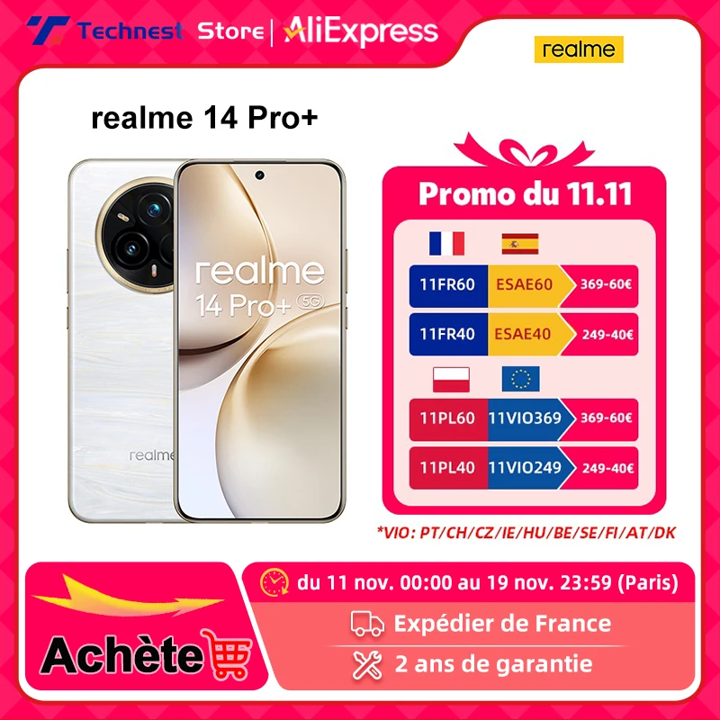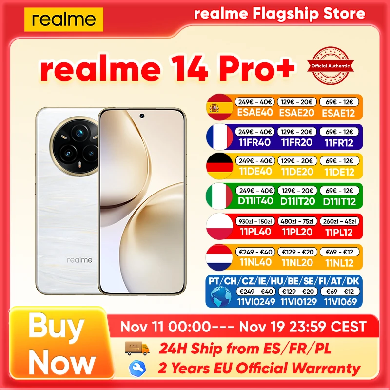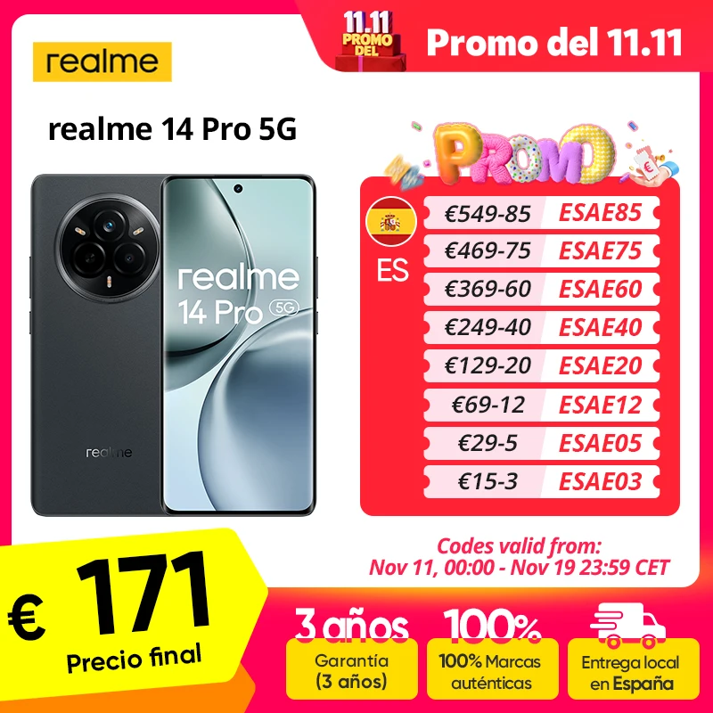 | realme 14 Pro+ 5G | 322,63 | 40 | 282,63 € | BFES40, ESBF40 o TEKNOE40 | ![]() |
