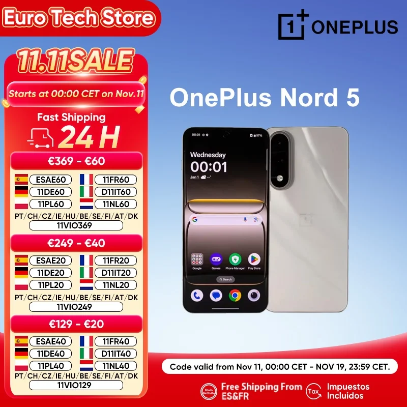 | OnePlus Nord 5 5G | 387,16 | 60 | 327,16 € | ESBF60 o TEKNOE60 | ![]() |