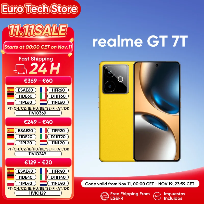 | realme GT 7T 5G | 320,08 | 40 | 280,08 € | BFES40, ESBF40 o TEKNOE40 | ![]() |