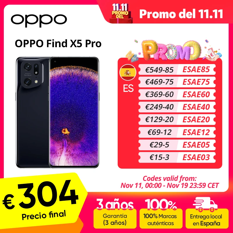 | OPPO Find X5 Pro 5G | 333,79 | 50 | 283,79 € | BFES50 o TEKNOE50 | ![]() |