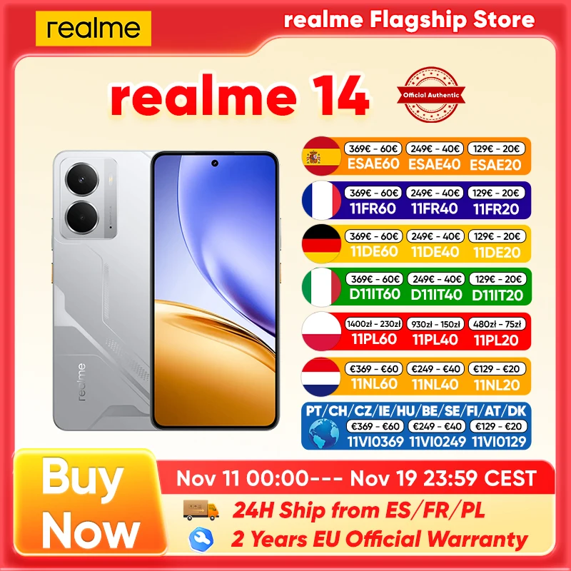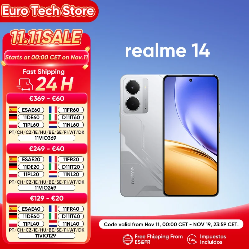 | realme 14 5G | 148,51 | 20 | 128,51 € | BFES20, ESBF20 o TEKNOE20 | ![]() |
