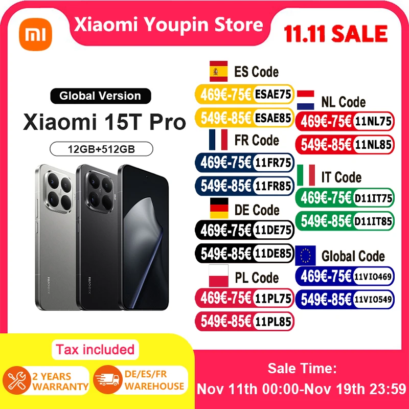 | Xiaomi 15T Pro | 650,38 | 70 | 580,38 € | BFES70, ESBF70 o TEKNOE70 | ![]() |