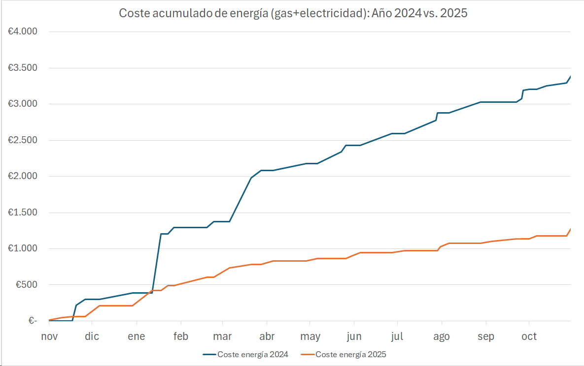 Costes de energía (gas + electricidad) durante 2024 y 2025