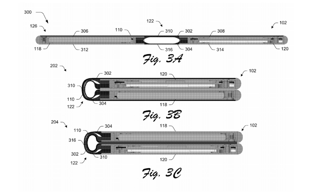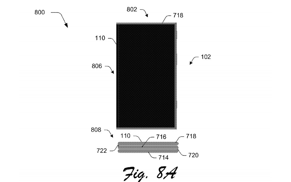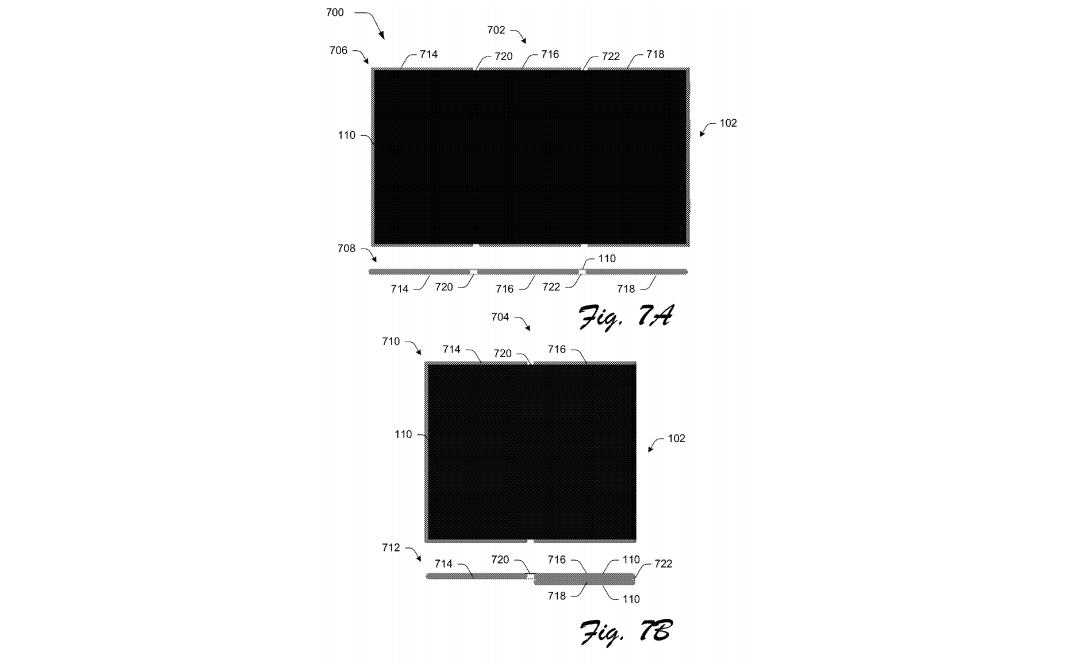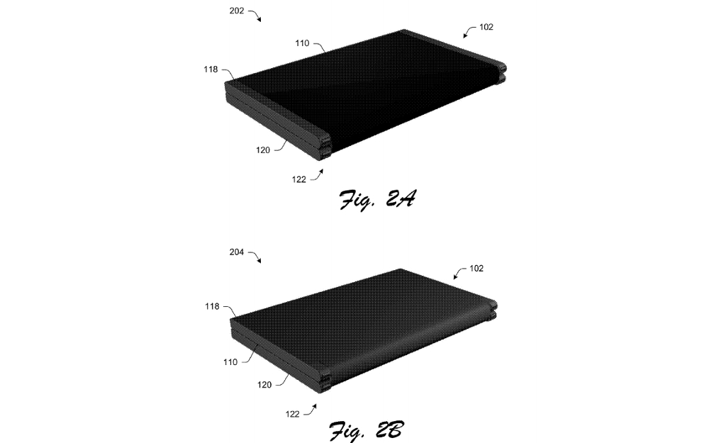 La patente describe un dispositivo plegable 2-en-1 que puede actuar como tablet y smartphone. El dispositivo parece contar con una especie de bisagra flexible en el centro que le permite ser plegado respecto al eje central. El dispositivo también parece tener una pantalla que ocupa todo el dispositivo.