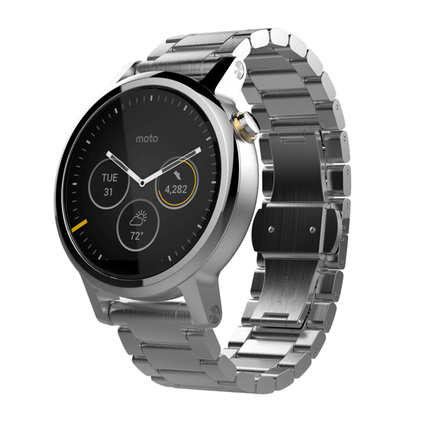 Para el Motorola 360 de hombre y mujer, Motorola sigue apostando por un diseño circular, aunque ha hecho algunos pequeños cambios. La versión para hombre tiene tamaños de 46mm (como el año pasado) y 42mm, mientras que la versión para mujer está disponible con una esfera de 42mm y monturas de correa más estrechas, de 16mm.