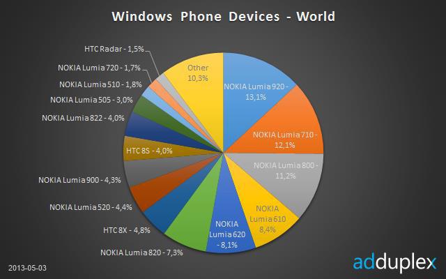 Nokia hizo una gran apuesta por Windows Phone 8 con su buque insignia, el Nokia Lumia 920 y, a juzgar por las cifras de la plataforma publicitaria AdDuplex, con gran éxito ya que el Lumia 920 es el terminal más popular con Windows Phone 8 gracias a una cuota de mercado de un 13,1%.