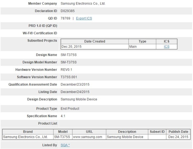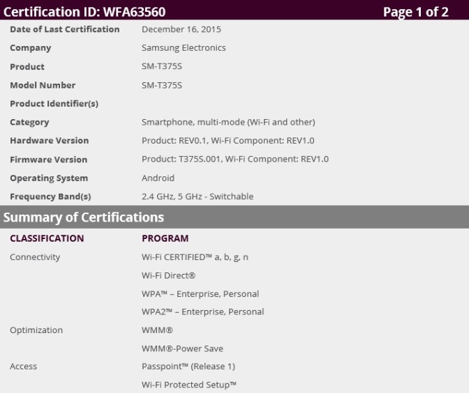 El dispositivo desconocido de Samsung es una tablet modelo SM-375S y, por la información que hemos podido conocer, tiene una pantalla de 8″ y ha salido de Corea del Sur para pruebas.