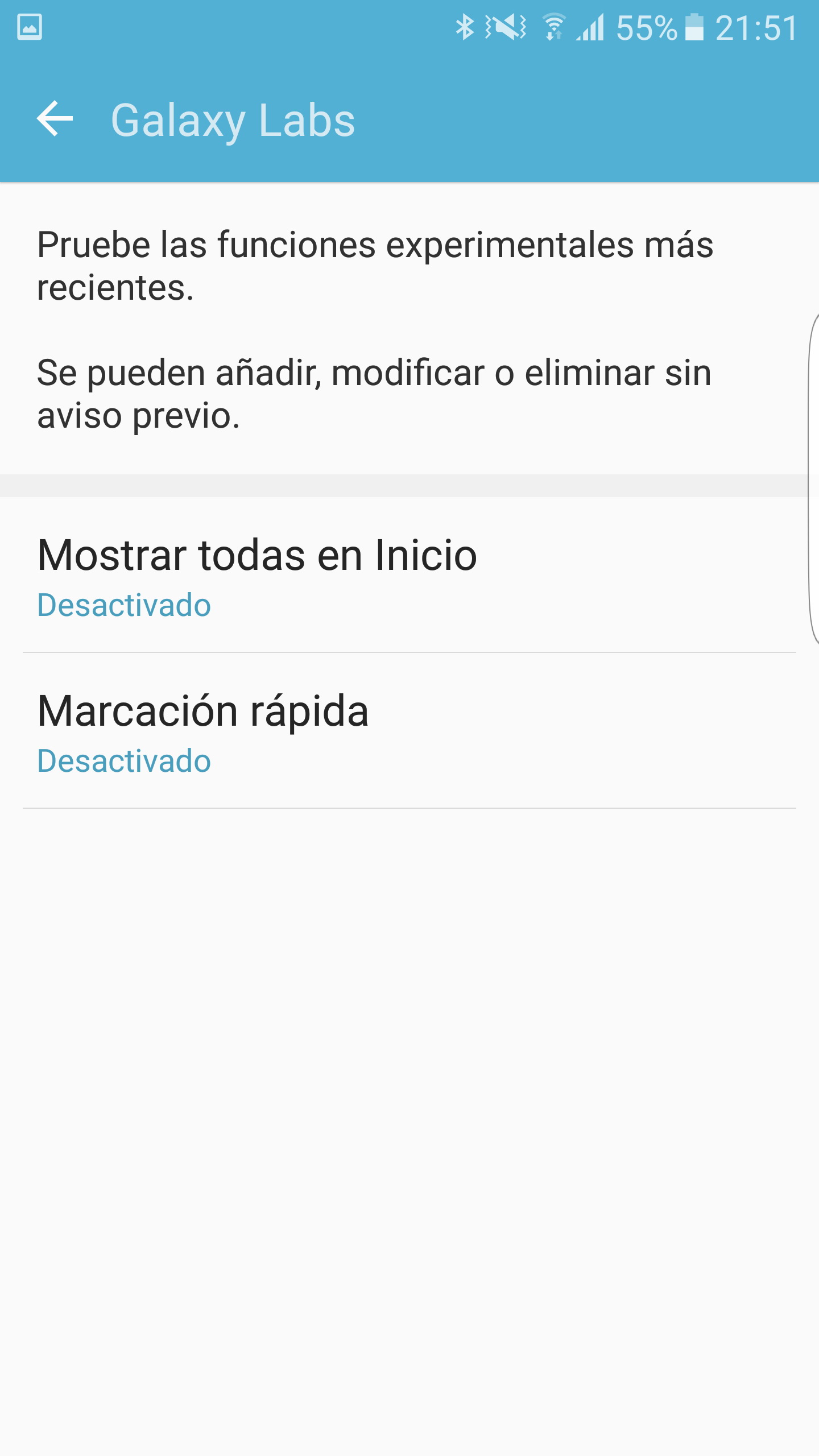 El apartado «Galaxy Labs» contiene un conjunto de funcionalidades experimentales que llegan con una clara advertencia: «[estas funcionalidades] se pueden añadir, modificar o eliminar sin aviso previo.»