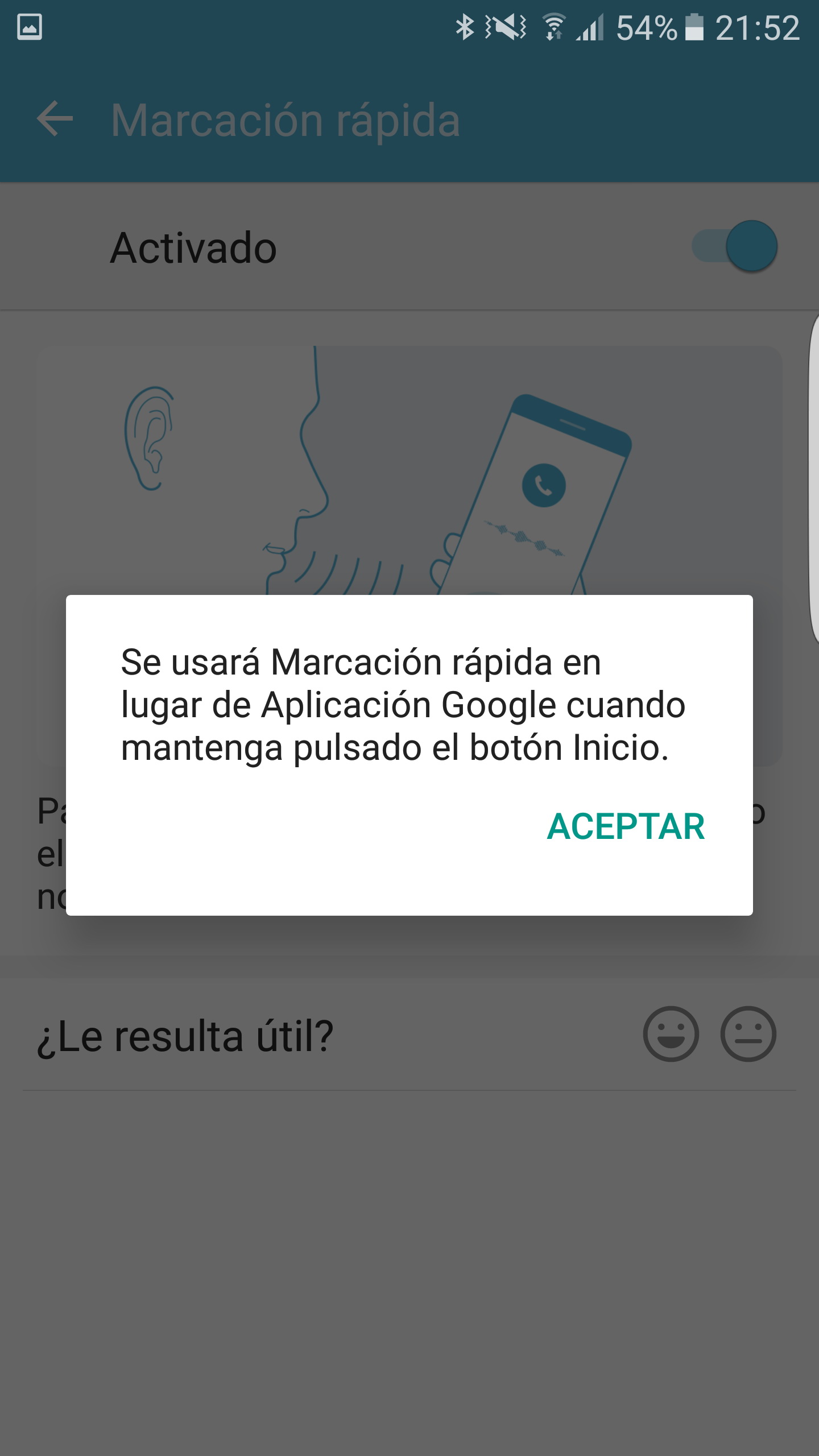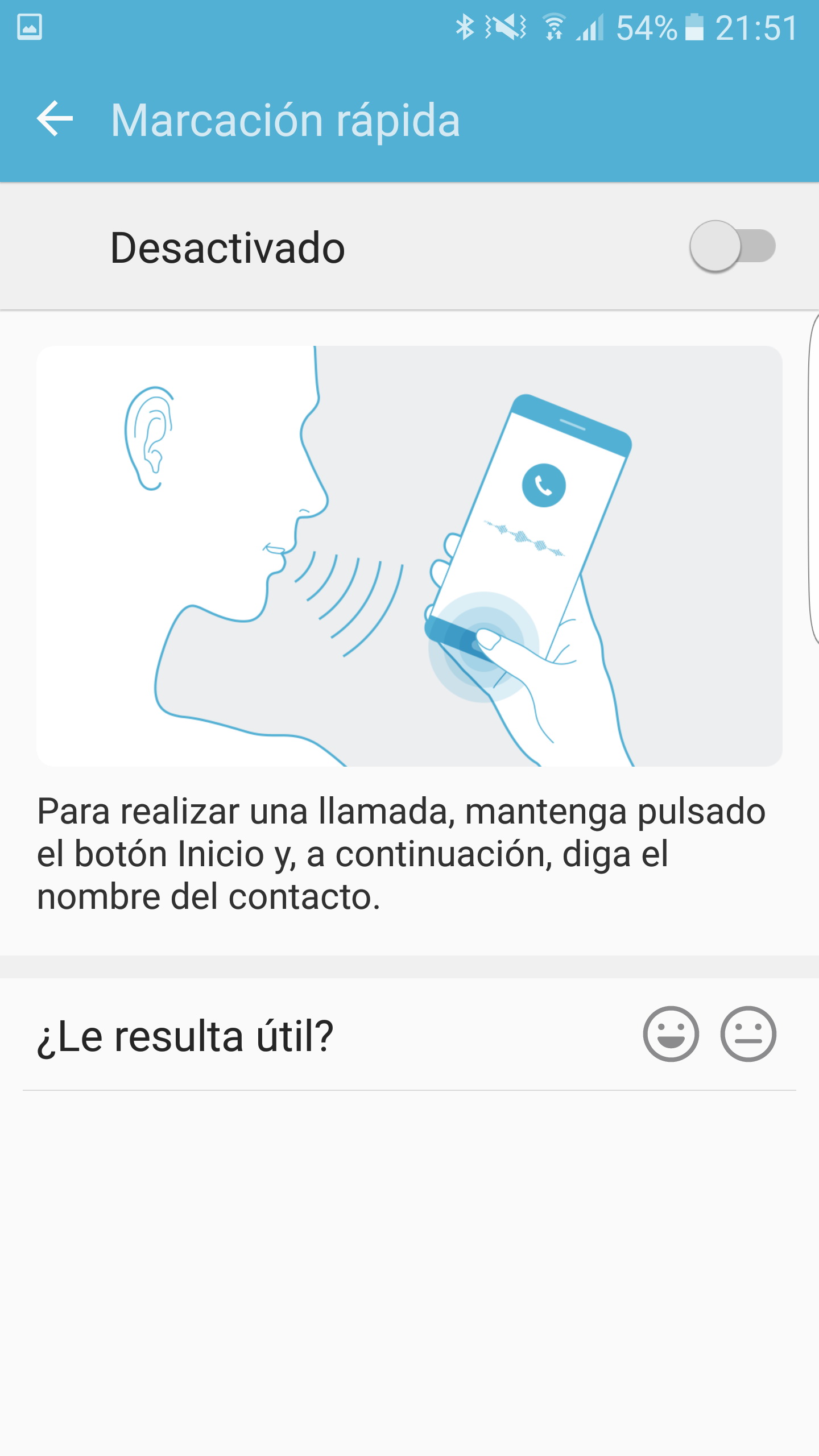 La Marcación Rápida es otra funcionalidad que permite realizar llamadas mediante una pulsación larga sobre el botón de Inicio y pronunciando un nombre. Una vez que la activas, esta función sustituye a la aplicación de Google cuando mantienes pulsada la tecla de Inicio.