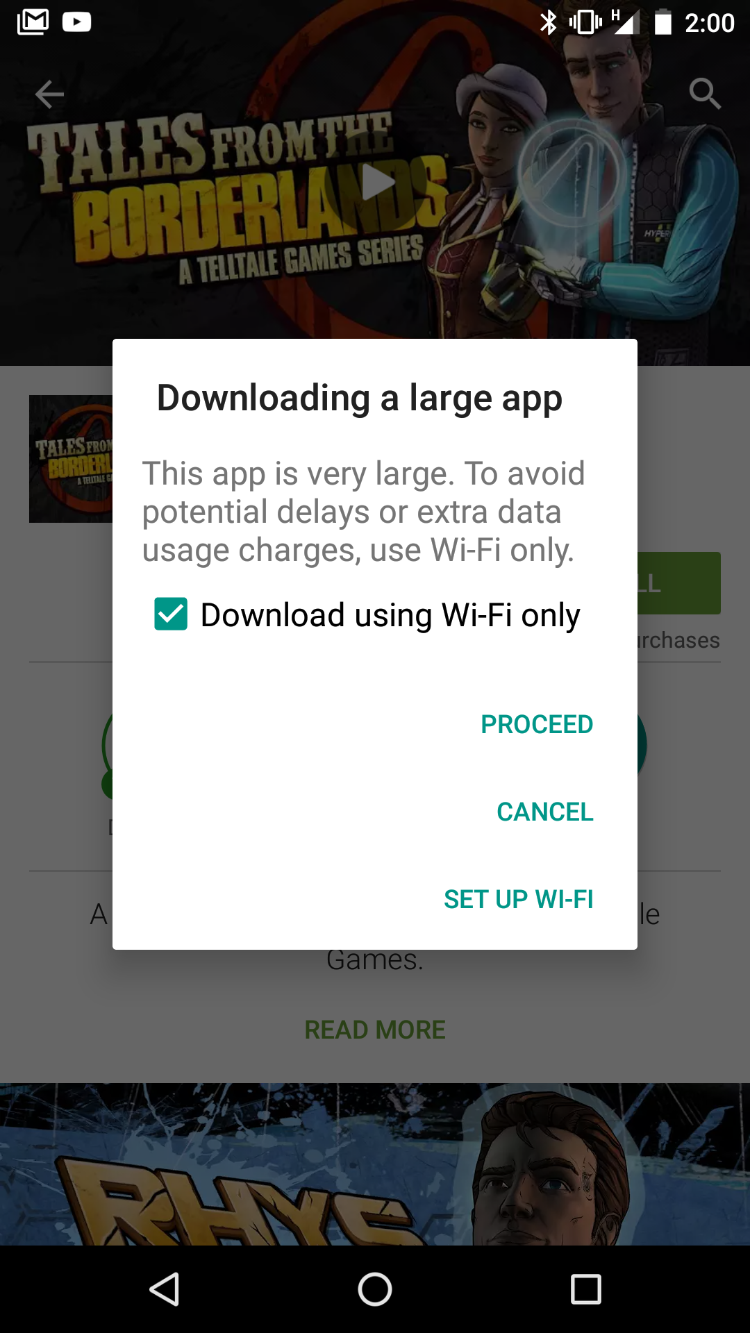 Esta opción solo está disponible para algunos usuarios, así que probablemente no las veas. Pero con esta opción verás una nueva ventana de diálogo cuando trates de descargar algo de Play Store con datos móviles.