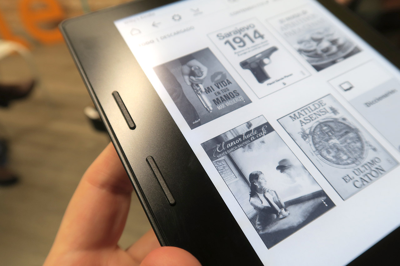 El marco lateral extra ancho está solo a uno de los lados, pero es posible sostener el lector con comodidad utilizando cualquiera de las dos manos (¡tranquilos, zurdos!) ya que el lector incluye un sensor de peso que rota la pantalla automáticamente dependiendo de la forma en la que lo sujetes.