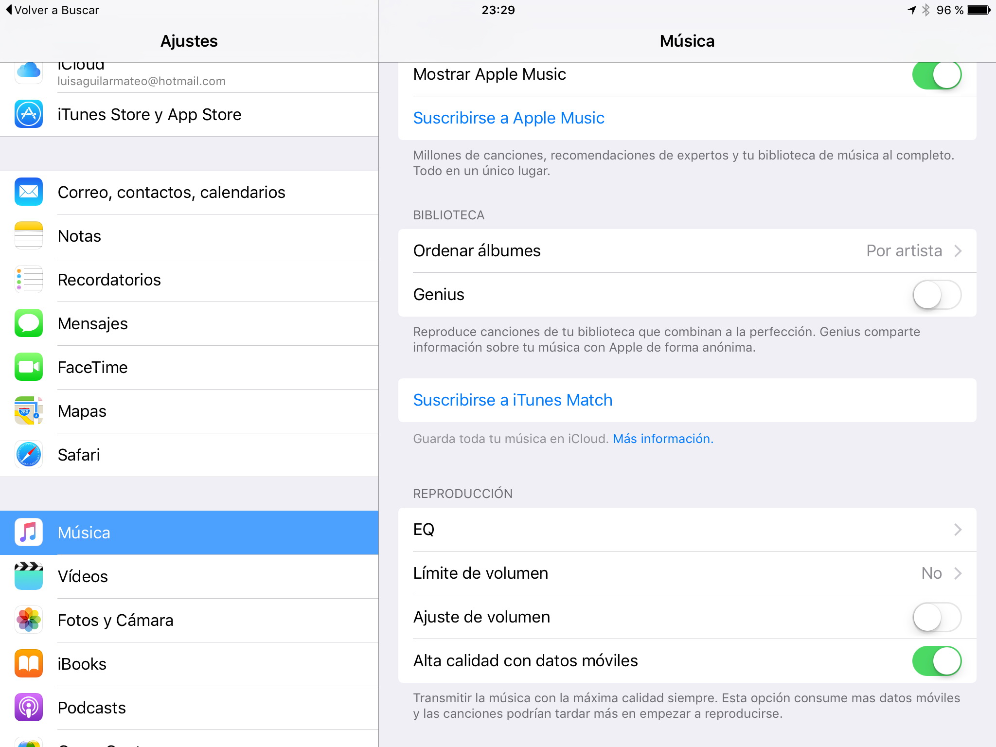 La versi贸n iOS 9 beta 3 incluye una nueva versi贸n de la aplicaci贸n M煤sica. Tambi茅n encontramos una nueva opci贸n en Ajustes, bajo la secci贸n de M煤sica, que permite hacer streaming de la m煤sica a la m谩s alta calidad con una conexi贸n de datos m贸viles.