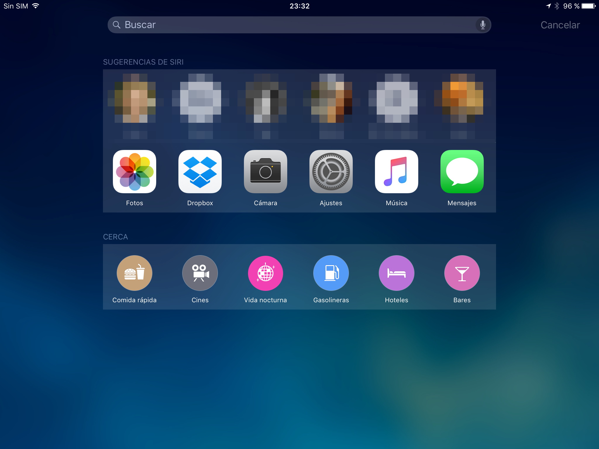 Cuando arrastras la pantalla hacia abajo para realizar una b煤squeda en iOS 9, ahora Siri comienza mostrando sugerencias de aplicaciones. Siri mostrar谩 informaci贸n dependiendo del contexto, como aplicaciones que se han abierto frecuentemente en esa ubicaci贸n o a esa hora.
