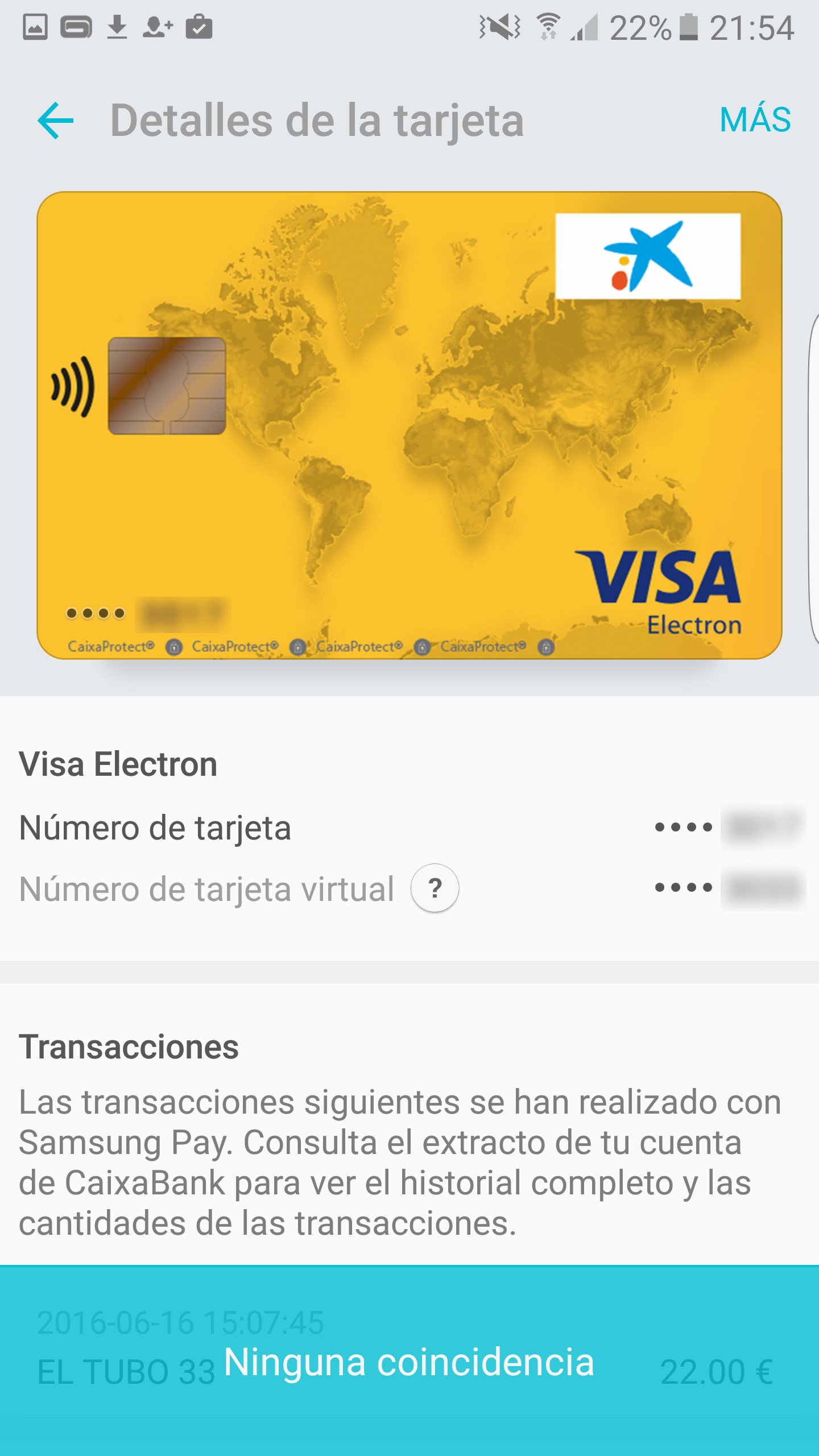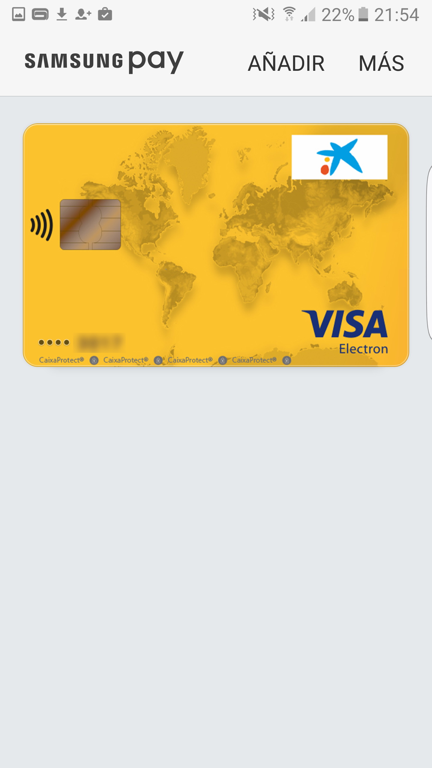 • poseer una tarjeta de crédito de una entidad financiera adherida a Samsung Pay, por el momento CaixaBank o imaginBank y, en un futuro cercano, también Abanca y Banco Sabadell