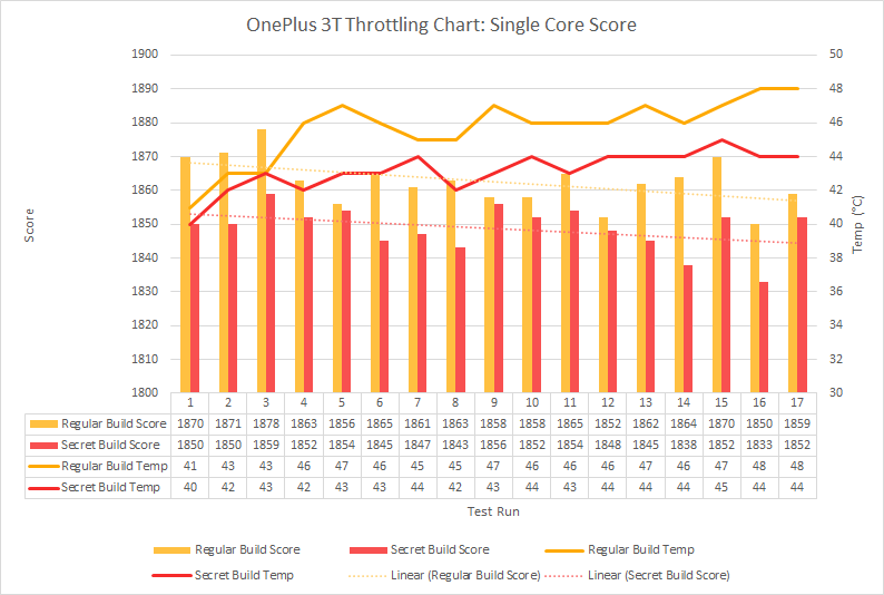 Qualcomm incrementa la velocidad de la CPU al abrir una app para obtener mejores velocidades, pero el OnePlus 3T no vuelve a la velocidad original tras abrir la app. Después de un análisis llevado a cabo por XDA y GeekBench, se ha confirmado que OnePlus engaña a ciertas apps para ofrecer un mejor rendimiento manteniendo esta velocidad anormalmente alta.