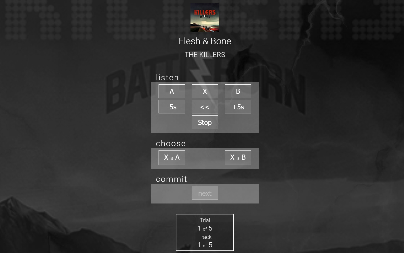 Uno de los más populares es el test ABX, donde escuchas dos muestras de referencia (A y B) y una muestra objetivo (X). Tu tarea será decidir si la muestra X coincide con la A o con la B. Se te presentarán varias rondas de prueba.