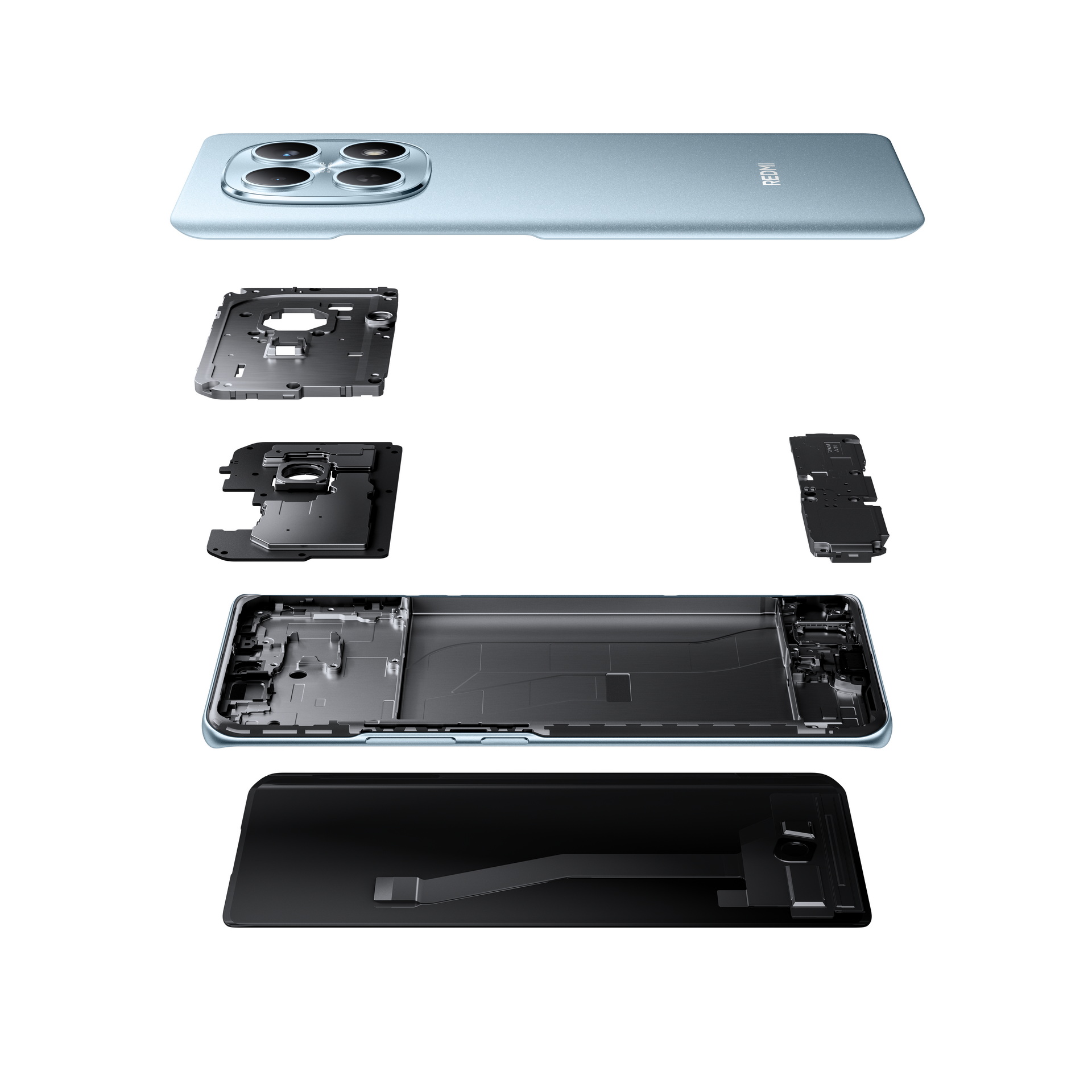 Ambos dispositivos integran una estructura multicapa con placa base de alta resistencia, marco medio reforzado y un sistema avanzado de absorción de impactos, todo ello protegido por Corning® Gorilla® Glass Victus® 2, capaz de resistir caídas certificadas desde alturas de hasta 2,5 metros. En el caso del REDMI Note 15 Pro+ 5G, se suma además un panel trasero de fibra de vidrio ultra resistente que mejora la absorción de impactos sin incrementar el peso.