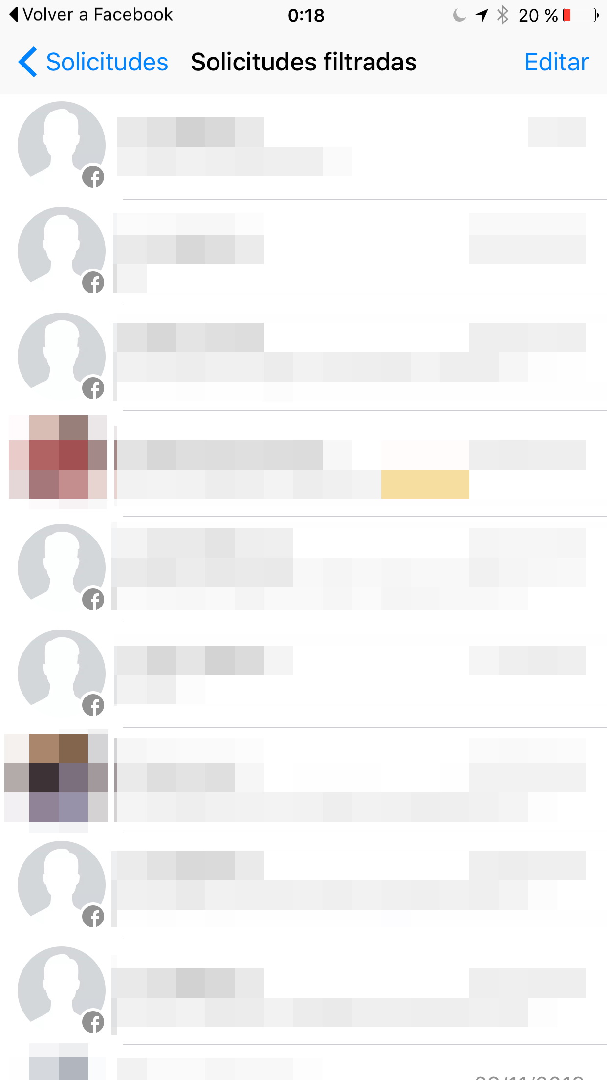 Es muy posible que allí encuentres mensajes de personas conocidas que, al no ser tus amigos en Facebook, no han pasado los filtros de la compañía. Si eres usuario de Facebook desde hace mucho tiempo probablemente encuentres mensajes de hace varios años.