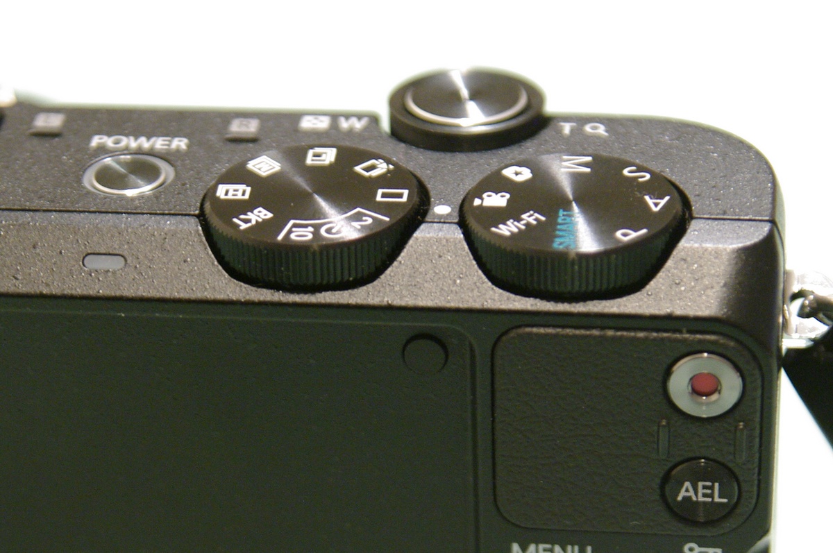 El dial principal contiene los modos ‘típicamente fotográficos’, también conocidos como PASM , además del modo video, el modo ‘mágico plus’, el Wi-Fi y, como no, un modo ‘verde’ todo automático aquí llamado SMART.