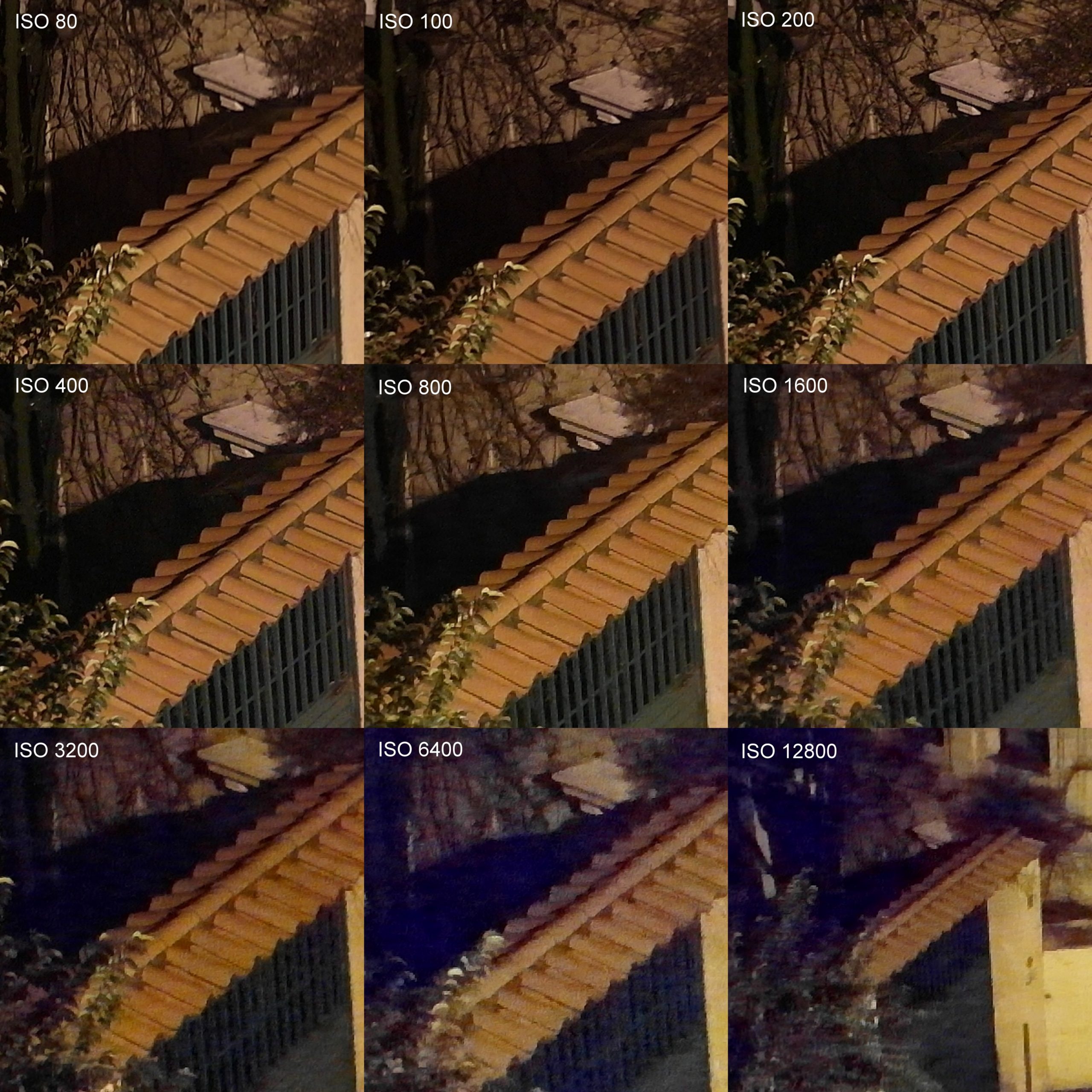 Los modos 1600 y 3200 de la Samsung EX2F son de emergencia aunque usables, y los modos extendidos (hay que habilitarlos por menú) deberían usarse en alguna situación en la que sean imprescindibles para realizar una toma que no queremos perdernos bajo ningún concepto. Los resultados de estas sensibilidades extremas son muy pobres como podemos comprobar en la siguiente comparativa (el modo 12.800 además disminuye la resolución):