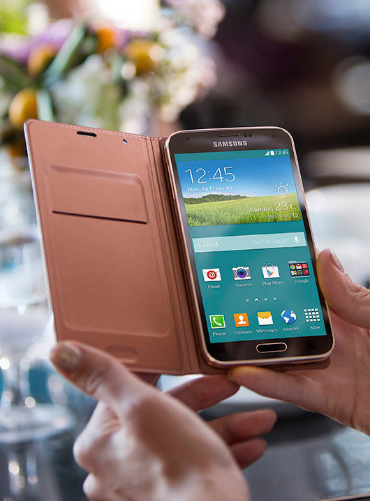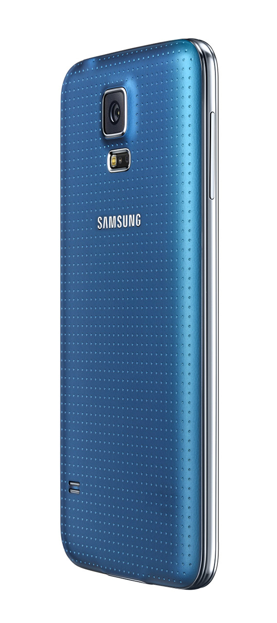 Samsung ha actualizado el diseño del Galaxy S5, especialmente en la cubierta trasera, que aún siendo plástico ahora presenta una textura suave que resulta cómoda de agarrar. Samsung llama a este diseño «Modern Flash» y permite ofrecer el terminal en diversos colores.