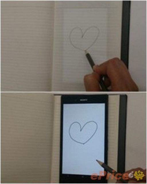 Por las imágenes da la sensación que el Sony Xperia Z Ultra será capaz de detectar y reproducir digitalmente lo que un usuario escribe sobre un trozo de papel que esté encima de la pantalla. | Fuente: Unwired View