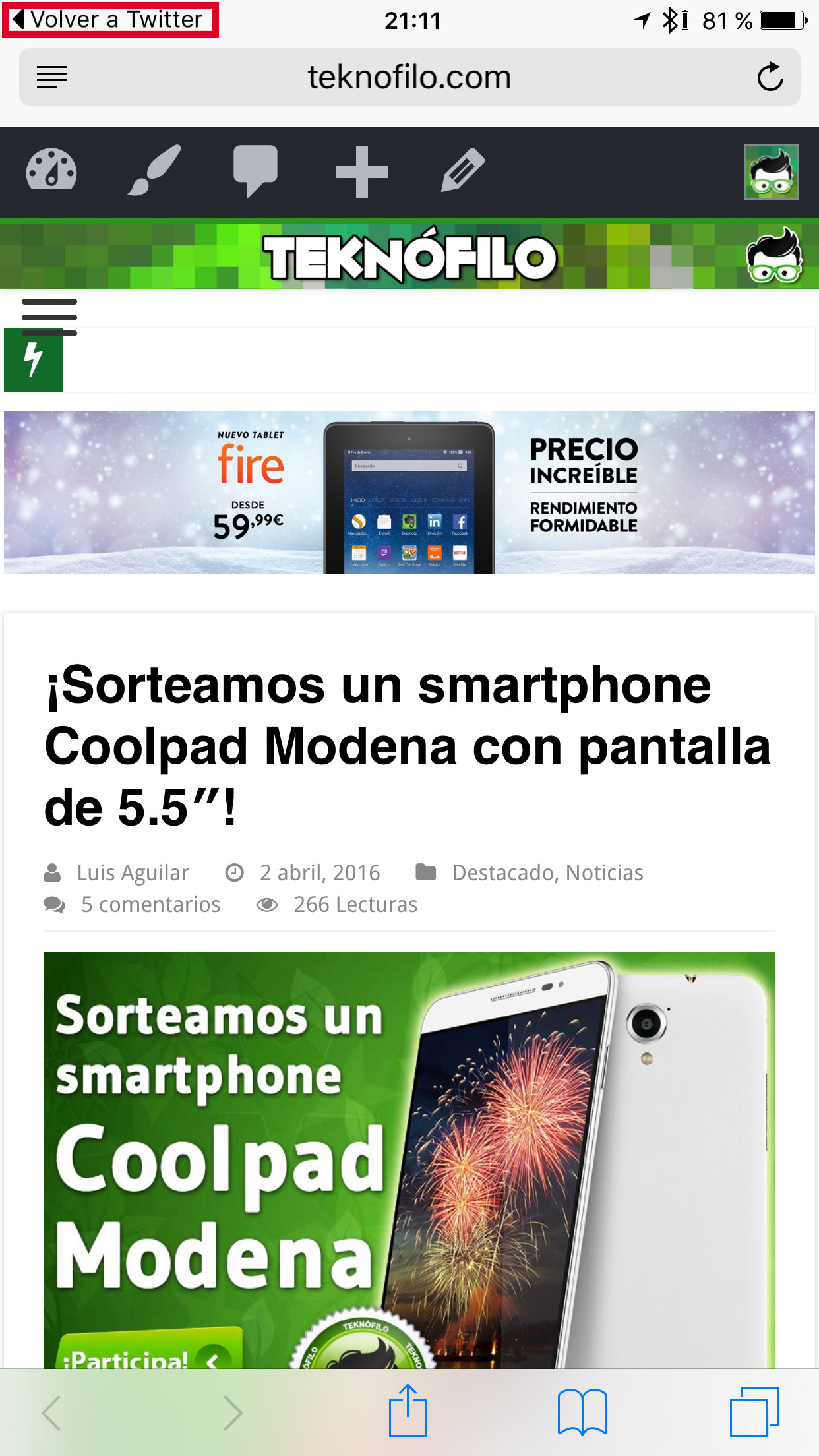 Por suerte, en iOS resulta muy fácil volver a la aplicación anterior desde la que pulsaste en un enlace, ya que iOS muestra una acceso para volver a la aplicación anterior en la parte superior izquierda de la pantalla.