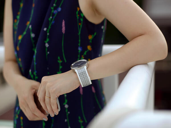 Al igual que el original, el FES Watch U cuenta con una pantalla de tinta electrónica tanto en la correa como en la esfera, pero el FES Watch U posee un cuerpo de acero inoxidable que está también disponible en tres colores: negro, blanco y plata.