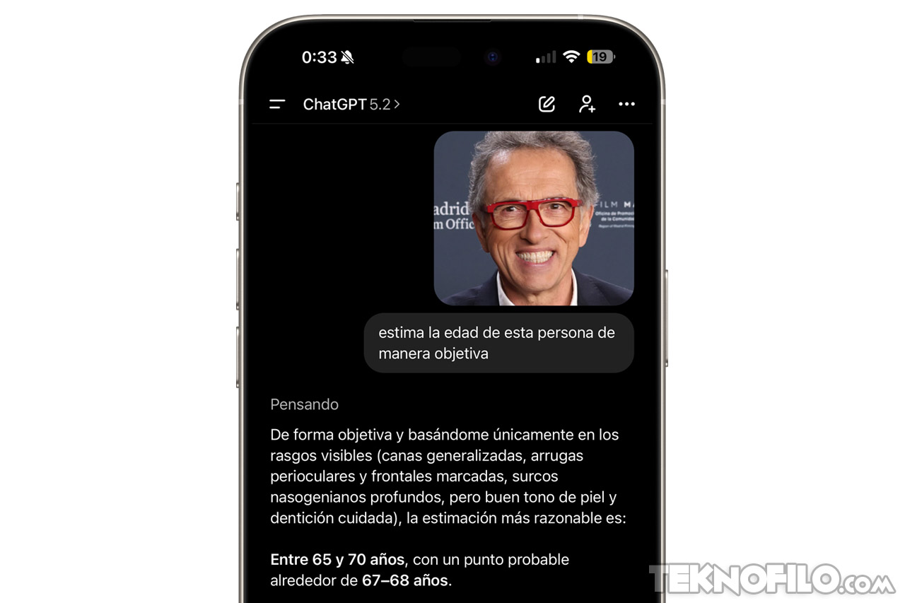 ChatGPT no “adivina” tu edad por arte de magia ni accede a datos personales. Lo que hace es analizar rasgos visibles en una imagen: textura de la piel, líneas de expresión, firmeza facial, presencia de canas, o incluso el estilo general.