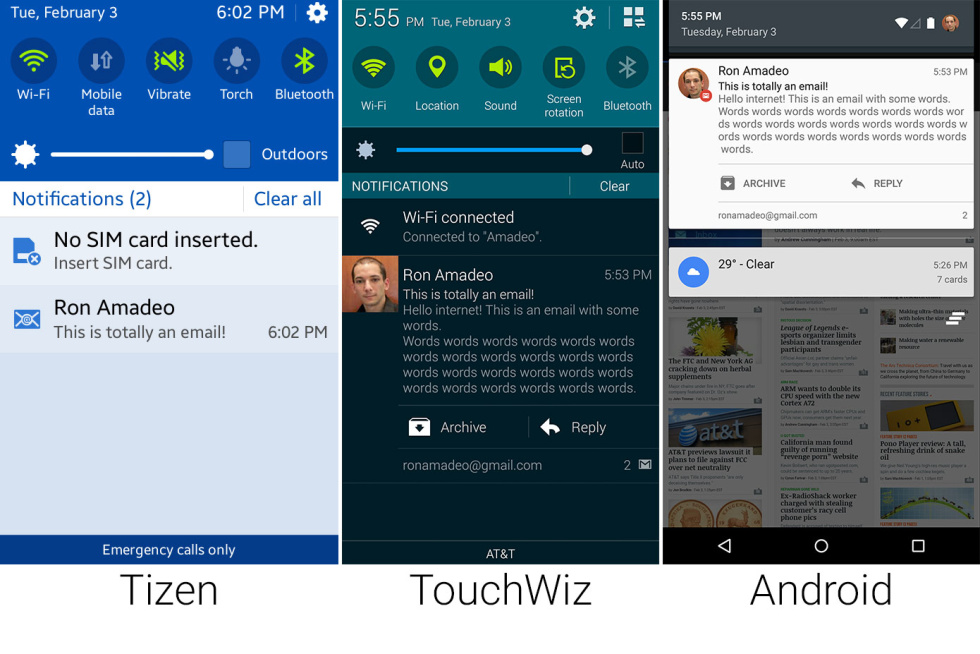 Tizen vs. TouchWiz vs. Android: Diferencias visuales en sus interfaces gráficos