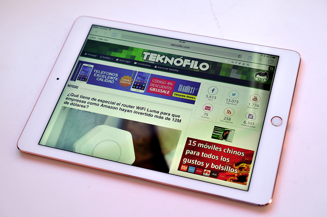 La pantalla también es más brillante que la del iPad Air 2, un 25 por ciento según Apple, y a simple vista esto se nota. Además del mayor brillo, la nueva pantalla ofrece un mejor tratamiento anti reflejos, por lo que he podido comprobar que ahora resulta más fácil que nunca utilizar el tablet a plena luz del día.