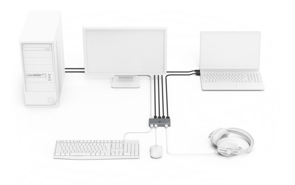 Gracias a sus cuatro puertos conmutables —tres USB-A y un HDMI™—, es posible conectar desde periféricos básicos hasta impresoras, auriculares, el televisor o proyector. El cambio entre dispositivos se hace de forma inmediata con solo pulsar un botón, sin necesidad de reconectar nada ni interrumpir la actividad.