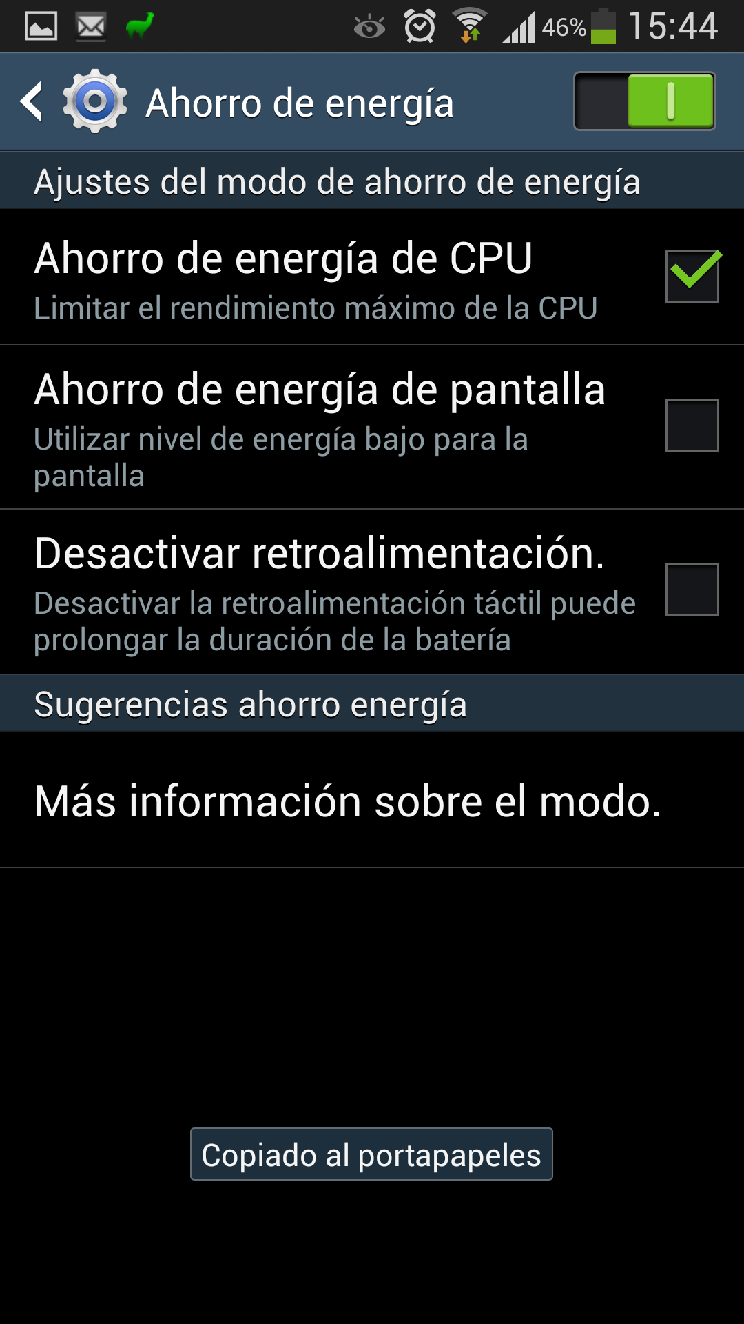 En nuestro caso hemos activado la opción de ahorro de energía de CPU y no hemos notado un empeoramiento del rendimiento del teléfono, por lo que aconsejamos hacer uso de ella.