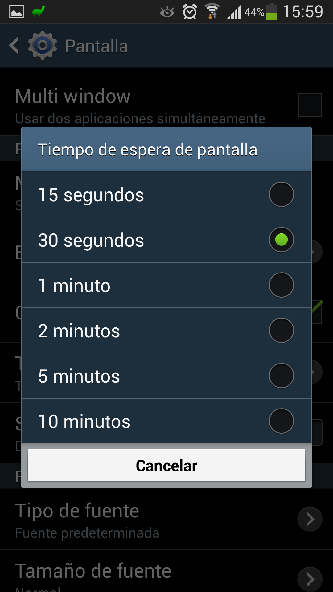 Por tanto, si combinamos ambas opciones – un tiempo de apagado corto (30 segundos) junto con Smart Stay – podemos conseguir que el teléfono apague rápidamente la pantalla cuando no la estamos mirando.