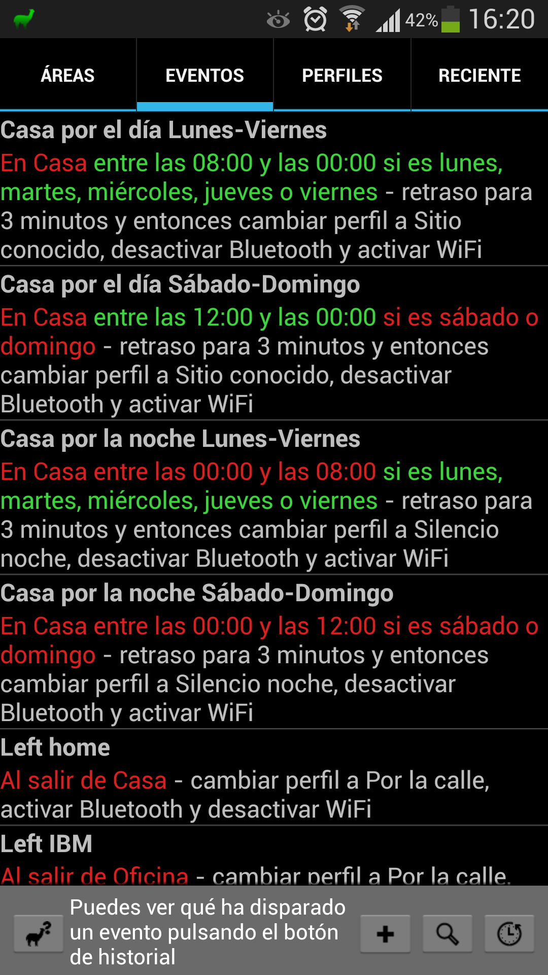Llama permite activar y desactivar distintas funcionalidades (Wi-Fi, Bluetooth, etc.) en función de reglas (ubicación, hora del día, etc.) de forma que puedes hacer que en tu casa o en el trabajo se active Wi-Fi pero que al salir de él se desactive.
