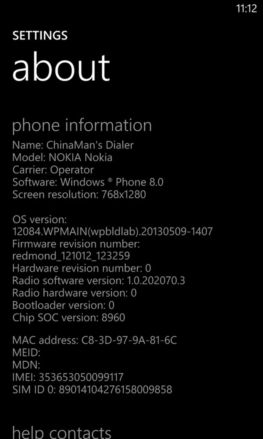 El teléfono muestra el número de versión que aparecen en las capturas 12084.WPMAIN(wpbldlab).20130509-1407, lo cual nos hace pensar que puede haber sido compilado en mayo. A continuación os dejamos con una buena cantidad de imágenes capturadas por este usuario | Fuente: Engadget