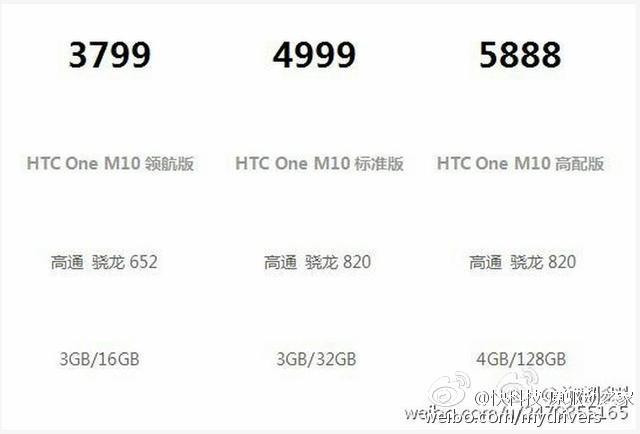 La variante del HTC 10 con Snapdragon 652 llegará con 3GB de RAM y 16GB de almacenamiento interno. Por otro lado, el HTC 10 con Snapdragon 820 llega en dos variantes de 3GB/32GB y 4GB/128GB.