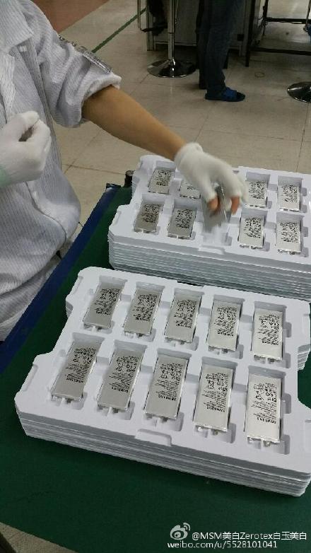 Hoy se han filtrado nuevas imágenes en Weibo que muestran un buen número de baterías de Samsung que parecen estar en una fábrica. Estas baterías poseen un número de serie que parece corresponder con el Galaxy S6, por lo que podrían ser reales.
